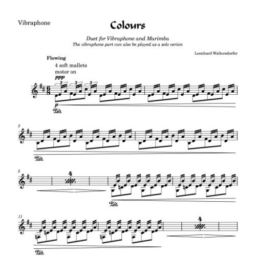 Skip to contentA quiet solo for vibraphone. The piece starts in D major and slowly shifts towards the most distant key (Ab major). In the second half of the piece it slowly comes back to D major again. There exists also a duet version of this piece.