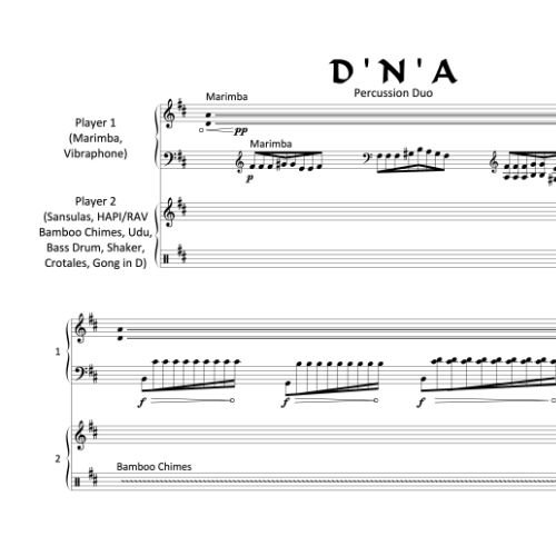 D ‘ N ‘ A was written as a duet for the ensemble Duo Waltersdorfer (Niki & Leonhard Waltersdorfer). The title on one side refers to the interval (d-a) which opens and ends the piece and can be seen as a (DNA-)string holding the piece together. On the other hand it is also a reference to the same DNA the two brothers are sharing.